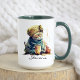 Caneca Gato Persa com Aquarela com Café Bebendo Turbano