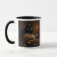 Caneca de café do Halloween com gato preto e uma abóbora com rosto assustador de cabeça para baixo.