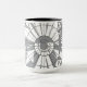 Combo mug carrying an abstract geometric mandala pattern design. The color of the pattern and the background can be changed to your preference, using Zazzle's editing tool.