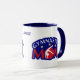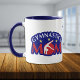 Você será uma orgulhosa mãe de ginástica com esta atraente caneca vermelha, branca e azul. A imagem colorida é impressa em dois lados, com seu nome ou outro texto personalizado em azul entre as imagens.