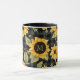 O impressionante padrão de girassol se destaca lindamente contra o fundo preto e cinza de gingham