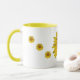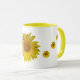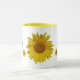 Flor de girassol amarelo. Grande imagem no centro com três flores menores em cada lado.