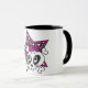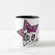 O crânio e as bósforas com arco, ao estilo Emo, são colocados sobre uma estrela roxa e preta com bolinhas brancas.