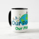 An inspiring illustration centered around a vibrant Earth globe, conveying a powerful message of global unity and environmental responsibility. Cheerful individuals are depicted engaging in various sustainable practices, such as riding bicycles, installing solar panels, and planting new greenery. The bold typography reinforces the collective strength of humanity in shaping a healthier world. This artwork captures the spirit of environmental activism, highlighting how everyday eco-friendly choices and community-driven clean energy initiatives can protect our planet for generations to come.