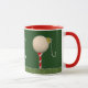 Uma engraçada caneca colecionável de golfe com design de golfe e linha de Natal para golfe.