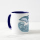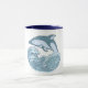 Ilustração de golfinho azul giro em estilo retrô com decoração de ondas marítimas para todos que amam golfinhos adoráveis