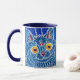 Café Mug com o animal de Louis Wain pintando um Gato em Estilo Gótico (1860-1939). Um gato azul psíquico olha amigavelmente com os olhos amarelos para o espectador. Um presente maravilhoso para amantes de gatos e arte inglesa.