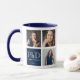 Um presente de graduação de fotos do Phd. Esta caneca de manutenção, com três modelos de fotos, permite que você escolha várias fotos do formando, fotos de entes queridos celebrando a formatura, ou uma combinação de ambas. Seu design azul e branco inclui o nome do formando, o grau, o ano e a palavra parabéns. Pronto para personalizar este presente? Basta adicionar suas palavras e fotos, adicionar esta caneca ao seu carrinho e depois celebrar a grande conquista do seu formando. Design de Natal de Café Mug no Café Azul PhD | ©Melissa Patton - Designer
