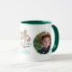 Adicione duas fotos (as quadradas são perfeitas, pois redimensionarão automaticamente para o dentro ajustado dos quadros redondos) para personalizar esta caneca de presente de Natal moderna para a vovó. As fotos podem ser de crianças, mãe, fotos de família, conforme desejado. Arte e tipografia desenhadas à mão.