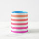 Lança-sol laranja e caneca listrada cor-de-rosa com seu nome personalizado em branco.