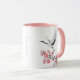 Esta bela design de caneca temática japonesa apresenta uma grua vermelha coroada voando atrás de lindas flores de cereja, também conhecidas como flores de sakura. Personalize o centro da caneca com um nome em texto elegantemente elegante.