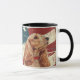 Esta caneca patriótica apresenta um retrato de aquarela de um cão Cocker Spaniel, de cor amarela, colocado contra um fundo gigante da bandeira dos EUA. Você pode adicionar texto, se quiser, escolhendo Personalizá-lo.