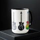 Guitarras elétricas em várias cores, pretas com raios, azul escuro, prateado...