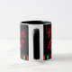 Mug com as palavras "Habari Gani?" isso significa "Quais são as notícias?" que faz parte da celebração Kwanzaa. As palavras estão em vermelho sobre fundo preto e este item tem uma faixa de ênfase vermelha, preta e verde.