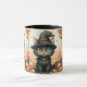 Pumpkins cercando um gatinho preto giro em um fundo que é o tema do Dia das Bruxas. Perfeito para o amante do Halloween