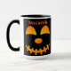 Uma caneca de Halloween adorável, com um belo rosto de jack-o-lanterno com nome personalizável.