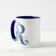 Confira este gráfico de Ravenclaw baseado no feitiço de criar água Aguamenti. Este apresenta um corvo azul em frente a uma letra "R" gigante com o nome "Ravenclaw" escrito abaixo.