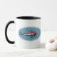 Uma caneca com desenho de um helicóptero B2B vermelho Branding em ambos os lados.