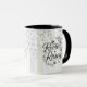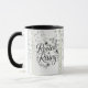The elegant quote, framed by delicate leaves and bees, rests against a backdrop of gentle watercolor-style stripes in muted tones — evoking both strength and serenity. With its black handle and interior for a modern contrast, this mug makes the perfect gift for dreamers, doers, and anyone embracing a journey of mindful transformation.