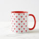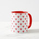 Esta caneca tem balões vermelhos em forma de coração sobre um fundo branco. Tem uma sensação tão caprichosa e romântica — como uma cena de uma história de amor à espera de se desdobrar