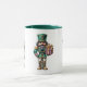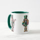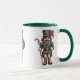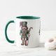 This ceramic coffee mug is shown in a festive holiday nutcracker print.
