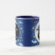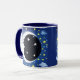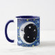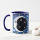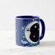 Mug em uma brincadeira, mística, serena, homem na lua, brilhando contra um fundo de estrelas e nuvens noturnas
