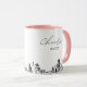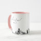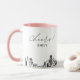 Cama de café de Houston. O design apresenta um desenho impressionante do skyline com a habilidade de personalizar com seu nome ou com os nomes de suas madrinhas, convidados ou outros. Atualize facilmente o tamanho e a cor da caneca ao seu gosto.