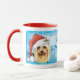 Comemore a época natalícia com os terrier de seda bonitos que vestem chapéus do papai noel entre flocos de neve e as palavras, Howlidays feliz! Grande ideia do presente de época natalícia para família e amigos De seda-loving.