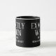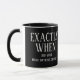 A caneca preta e branca pergunta "Exatamente quando suas opções de menu mudaram?"