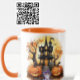 A parte de fora desta caneca de bruxaria assombrada da Casa Corgi apresenta uma base branca brilhante. Esta caneca é perfeita para um amante de Corgi e um amante de Halloween.