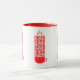 A creative red typographic design shaped like a steaming coffee cup, expressing the idea that inspiration follows caffeine.