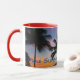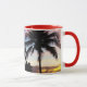 Foto de um pôr do sol tropical Maui Havaiano! Uma silhueta de palmeiras de coco alto é formada nesta noite de paraíso da ilha Maui tropical. Lindas cores de púrpura, azul, rosa, laranja e amarelo no céu à noite. As cores tropicais nesta foto sentem-se quentes e majestosas. Maui é uma das várias ilhas do Havaí e está localizada no oceano Pacífico central. É a segunda maior ilha do Havaí e conhecida por suas vastas praias tropicais arenosas, mais esses pôrs do sol incríveis! Diz-se que as ilhas havaianas têm a maior expectativa de vida nos EUA e com estes pôrs do sol cênicos, clima tropical quente, e belas paisagens exóticas não é de se admirar porquê. Aproveite sua estadia na ilha Havaiana de Maui com esta foto de qualidade! Esta caneca diz "Pôrs do sol Maui" em texto azul. O texto pode ser alterado ou removido com modelo de texto incluído.