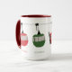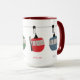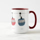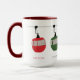 Adicione seus nomes a esta caneca de esqui. Um presente moderno para esquiar para ele e para ela. Padrão de ilustração da gondola do elevador de esqui retrô para esquiador. Esquiando decoração e presentes do lar temático