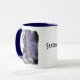 Uma caneca com um desenho engraçado sobre um gato mendigo, recusando-se a trabalhar para a comida. O fundo, a imagem e o texto podem ser personalizados. Arte original de BD Cartoons.