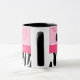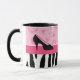 Faça uma indicação de forma com esta caneca na moda com um teste padrão preto e branco da zebra na parte inferior e as flores retros cor-de-rosa femininos o na parte superior com uns calçados colocados saltos das bolinhas elevação bonito. Personalize adicionando seu nome. Aperfeiçoe para o fashionista em cada menina adolescente!