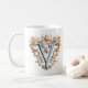 Esta caneca de café apresenta uma letra 'V' ornamentada em estilo Barroco e é adequada para uma princesa. Seria um lindo presente de madrinha, ou presente do Dia das Mães ou de aniversário.