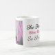 As características desta caneca e pintura original criadas pelo Ambrosia Sullivan em honra das mulheres que estão altas no trajeto dos obstáculos como o cancer… representado pela fita cor-de-rosa, acompanhada das citações de inspiração "acreditou que poderia assim que fez!"