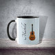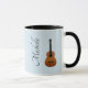 Instrumento musical caneca de guitarra acústica personalizada, com fundo azul e imagem de guitarra. As letras negras podem ser personalizadas com o seu próprio texto. Um presente divertido para o amante ou músico da sua vida
