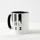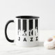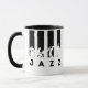 Músicos de Jazz tocando instrumentos musicais como Piano, saxofone, duplos tambores para amantes de jazz. Caneca de música jazz