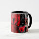 Esta caneca de arte vermelha e preta pareceria excelente na mesa da cozinha de qualquer um. Colecionei minhas fotografias e imagens em fazer vermelho e preto, uma mistura única de estranhos e corvos.