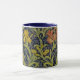 Este design apresenta um impressão de um design tecido criado pelo artista britânico William Morris (1834-1896), que está associado ao Movimento Artes e Artesanatos. Representa flores da íris azul e laranja em um padrão elegantemente simétrico. A flor é nomeada por Iris, que era a deusa grega do arco-íris e mensageira dos deuses olímpicos, mensagens de carregando até a humanidade. As folhas e caules das plantas da íris são representados em azul e verde. Há alguns pássaros amarelos tocando na folhagem das plantas. O padrão original foi desenhado por William Morris em 1887.