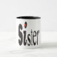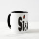 Mug para café, chá e mais com letras pretas grandes com um pequeno coração vermelho na frente, a ideia do presente de excelente da Irmã para o aniversário da Irmã.