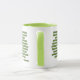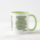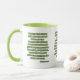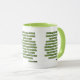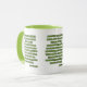 Esta caneca de dois tons mostra uma design que apresenta uma impressão de Cara Luckiest com letras verdes claras contornos pretos que mostram o verso da bíblia KJV "Isaiah 9:6" sobre um fundo branco neste tema baseado na fé. Este verso está referindo o Livro de Isaiah 9º capítulo mostrando o verso 6 neste tema de citação da bíblia do Rei James bíblia. A jante e o manípulo são vidrados em cores compatíveis, disponíveis em micro-ondas e máquinas de lavar louça de tamanho 11 onças ou 15 onças, construindo cerâmica segura.