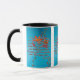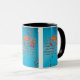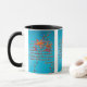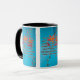 Esta caneca de dois tons mostra uma design que apresenta uma fonte impressão Charm com linhas pretas cinza exibindo o verso da bíblia "Isaiah 9:6" KJV nesta imagem de flores coloridas com múltiplas cores colocadas sobre um fundo azul-céu neste tema baseado na fé. Este verso está referindo o Livro de Isaiah 9º capítulo mostrando o verso 6 neste tema de citação da bíblia do Rei James bíblia. A jante e o manípulo são vidrados em cores compatíveis, disponíveis em micro-ondas e máquinas de lavar louça de tamanho 11 onças ou 15 onças, construindo cerâmica segura.