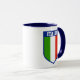 Esta caneca de café italiana legal da bandeira caracteriza as cores italianas da bandeira cercadas no azul. O punho e a borda do copo de café são igualmente uma cor dos azuis marinhos. Faz uma grande ideia do presente!