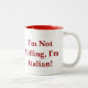 Caneca de café com dizer engraçado do italiano: "Eu sou não gritando mim sou italiano!" Branco exterior com impressão interior e vermelho vermelho na parte externa da caneca.