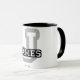 J é para James! É seu nome James? Ou você tem um marido, um namorado, um membro da família masculino ou um homem James nomeado amigo? Em caso afirmativo, esta caneca das "iniciais" é exatamente o presente que você está procurando! As características de design "James" na rotulação preta esboçada sobre a letra "J" nas cinzas esboçaram a rotulação.