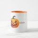 Esta personalizável design de caneca do "Dia das Bruxas" apresenta uma assustadora abóbora Jack O Lanterna com um texto que você pode personalizar.