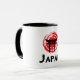 Ilustração de design de texto do Japão com sol vermelho gigante e decoração de portão de Torii para todos que gostam de viajar