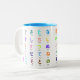 Caneca branca com todos os 46 símbolos japoneses dos hiragana. Pronunciação no alfabeto abaixo de cada caráter.